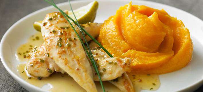 Τρίτη-Κοτόπουλο λεμονάτο, με πουρέ γλυκοπατάτας