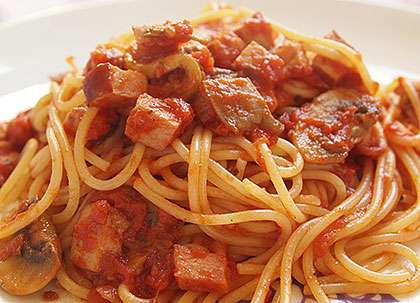 Πέμπτη-Μακαρονάδα με μανιτάρια και καπνιστή μπριζόλα