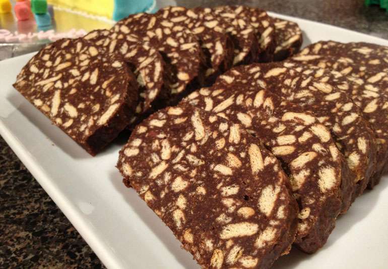 Σοκολατένιος κορμός διαίτης με μπισκότα και καρύδια με γλυκαντικό “onstevia”