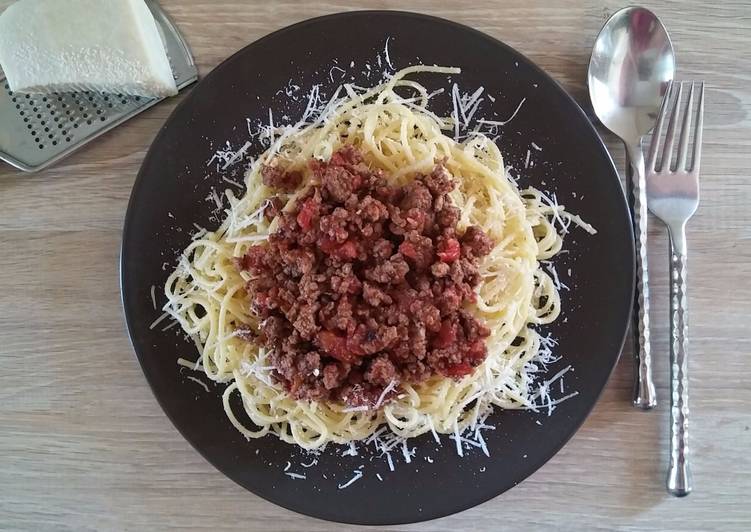 Εκτέλεση 42 Minutes Βάζουμε σε μεγάλο και βαθύ τηγάνι το λάδι και τσιγαρίζουμε τον κιμά και το κρεμμύδι. Τσιγαρίζουμε τον κιμά μέχρι να αλλάξει χρώμα, φροντίζοντας να μην σβολιάσει. Ρίχνουμε τη σάλτσα, τα γαρύφαλλα, την κανέλα, το μαϊντανό και το αλατοπίπερο Και αφήνουμε να σιγοβράσει μέχρι να πιεί το περισσότερο ζουμί (περίπου 40′). Έχουμε βράσει τα μακαρόνια σύμφωνα με τις οδηγίες του πακέτου. Σερβίρουμε ζεστά με μπόλικο τυράκι.