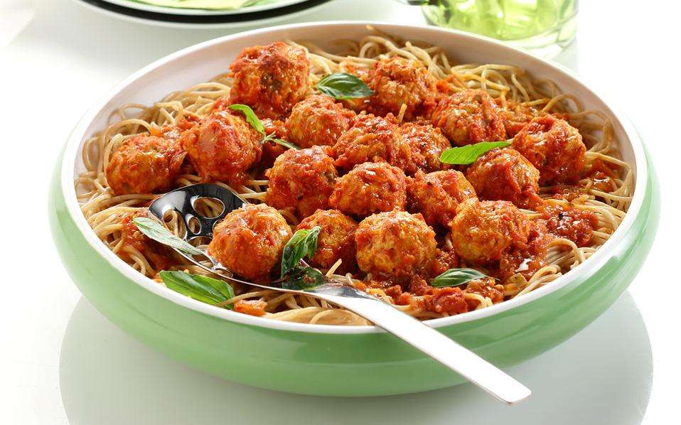 Πέμπτη-Κεφτέδες γαλοπούλας κοκκινιστοί με μακαρόνια