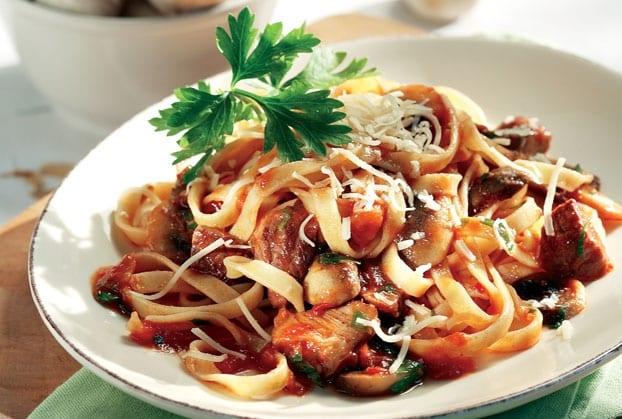 Κυριακή-Ταλιολίνι με ψιλοκομμένο μοσχάρι και μανιτάρια
