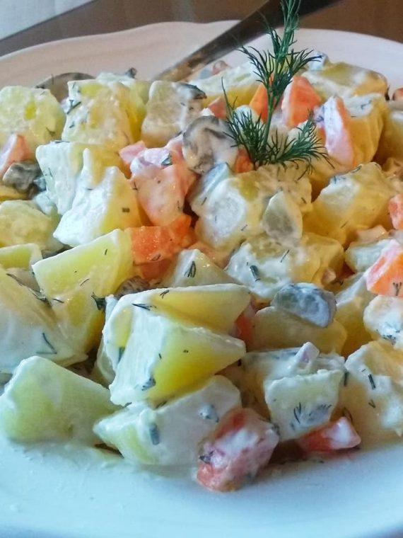 Δροσερή πατατοσαλάτα με αγγουράκι τουρσί γιαούρτι και μαγιονέζα