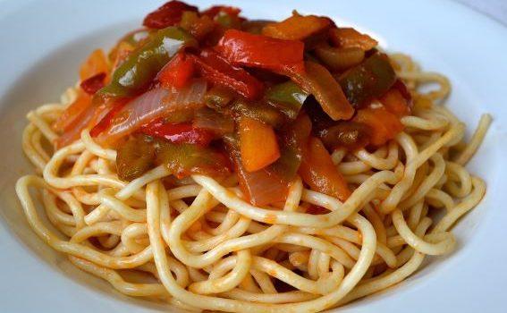 Τρίτη Μακαρόνια με σάλτσα ντομάτας κρεμμύδι και πιπεριές