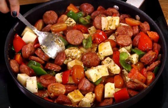 Δευτέρα Tηγανιά με λουκάνικο, πιπεριές και κεφαλοτύρι