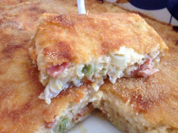 Πανεύκολη πίτα με πράσο μπέικον και τυρί σαν σουφλέ