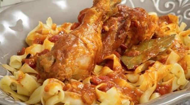Μεσημεριανό: Koτόπουλο κοκκινιστό με χυλοπίτες