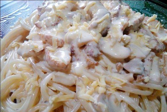 Μεσημεριανό: Καρμπονάρα με κρέμα γάλακτος και κοτοπουλο