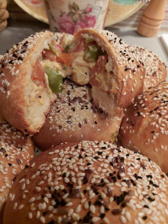 Απογευματινό: Γεμιστά ψωμάκια με πιπεριές και ντομάτα ιδανικά για κολατσιό