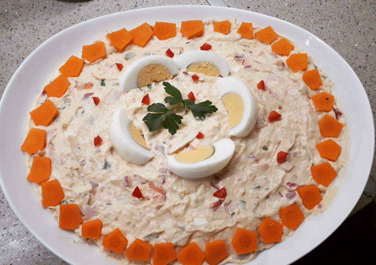 Συνταγή για γερμανική πατατοσαλάτα με σως μαγιονέζας, γαλοπούλα και τυρί