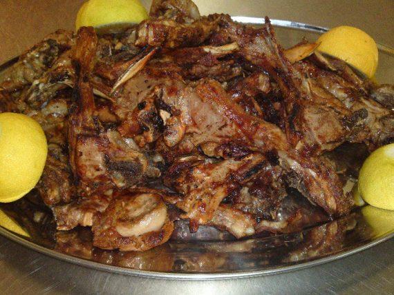 1 καλαμάκι κοτόπουλο κατά προτίμηση (και όχι χοιρινό!) και 1 μικρή αλάδωτη πίτα ή ½ κανονική αλάδωτη πίτα. μια φετα ψωμι φρυγανισμένο με ελαιόλαδο αλάτι και ρίγανη