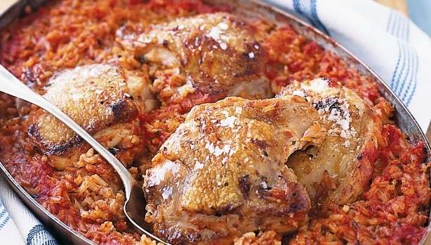 Τρίτη-Κοτόπουλο με ρύζι κοκκινιστό και μυρωδικά στο φούρνο
