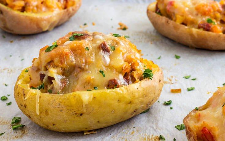 Πεμπτη-Γεμιστές πατάτες με τυριά και μπέικον