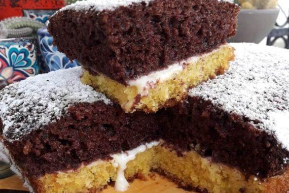 Απογευματινό: Δίχρωμο σιροπιαστό κέικ με ενδιάμεση στρώση κρέμας!
