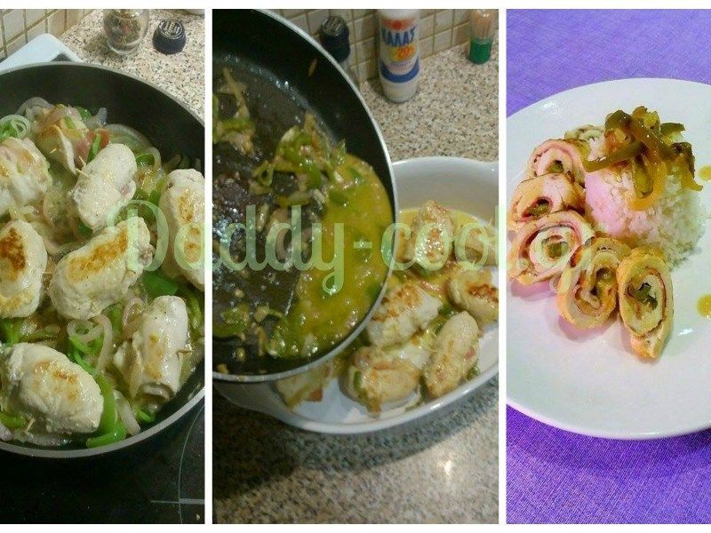 Τρίτη-Ρολάκια κοτόπουλου γεμιστά με ρύζι basmati.
