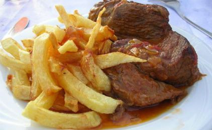Κυριακή- Κοκινιστό με πατάτες τηγανιτές