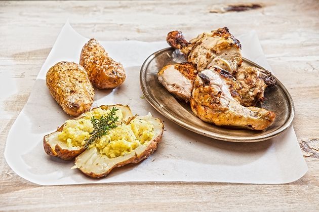 Πέμπτη-Κοτόπουλο BBQ και γεμιστές ψητές πατάτες