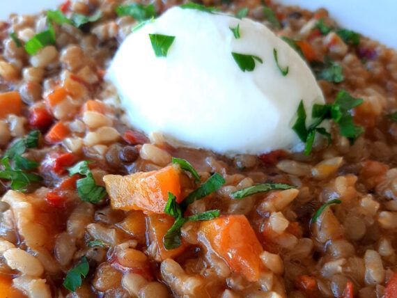 Θρεπτικό φακόρυζο που συνδυάζει όσπρια και δημητριακά. Η τέλεια επιλογή για μεσημεριανό στο ολοήμερο αλλά και για όλη την υπόλοιπη οικογένεια, πλούσιο σε θρεπτικά συστατικά με κριθάρι και σιτάρι.