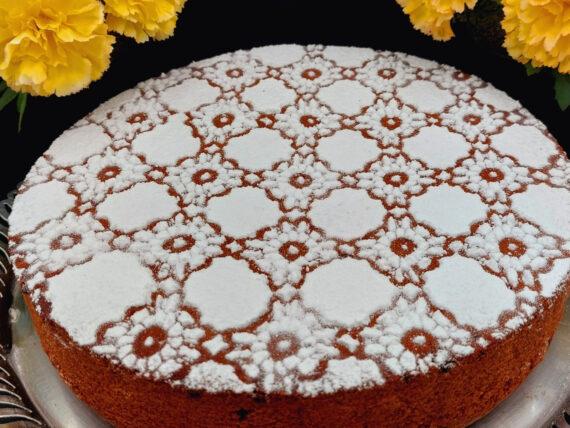 300g seed oil 400g sugar and Powder for sprinkling (1 ingredient) 800g of self-rising flour 1 tsp cinnamon ½ tsp cloves 450g orange juice and the zest of 1-2 oranges (1 ingredient) ½ tsp soda 200g black raisins 1 pinch of salt or two vanilla pods or some nuts Pan 30 points Air bake 45-50 minutes at 160 ***************************************************