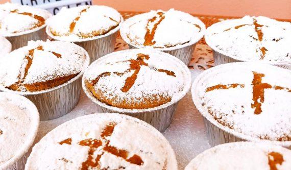 Αφού ψηθούν τα πασπαλίζουμε με ζάχαρη άχνη χρησιμοποιώντας ένα κόσκινο. Στην συνέχεια κάνουμε το σταυρό με ένα καλαμάκι το οποίο θα το βουτάμε στο νερό και στην συνέχεια θα σχηματίζουμε τον σταυρό. Αφού κρυώσουν πολύ καλά, τα τυλίγουμε με μεμβράνη και τα μοιράζουμε.