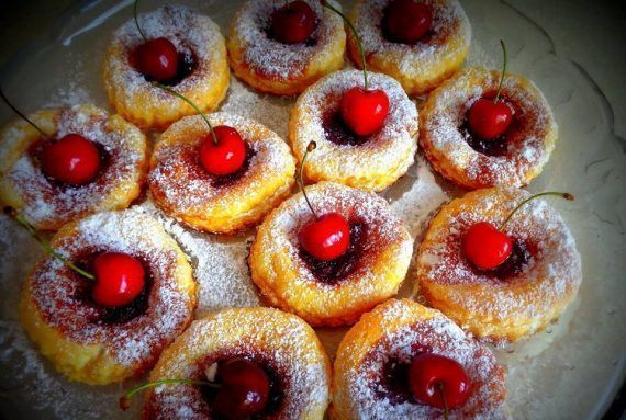 ΚΕΡΑΣΟΠΙΤΑΚΙΑ … 🙂 ! Μία μπάλα παγωτού τής αρεσκεία σας είναι ή πιό καλή παρέα. Λίγα ψιλοκομμένα φύλλα δυόσμου στά κεράσια θά δώσουν ένταση καί άρωμα. Προετοιμασία: 10′ Ψήσιμο: 30′ ΥΛΙΚΑ ΓΙΑ 6 ΑΤΟΜΑ: 12 σφολιατάκια στρογγυλά .. (τά βρίσκετε έτοιμα στά ψυγεία τών Σούπερ Μάρκετ) .. 200 γρ. κεράσια, χωρίς κουκούτσι ψιλοκομμένα 100 γρ. ζάχαρη άχνη 2 κ. σ. λικέρ βύσσινο 2 κ. σ. βούτυρο λιωμένο ΕΚΤΕΛΕΣΗ: 1) Προθερμαίνουμε τόν φούρνο στούς 180οC. 2) Ανακατεύουμε τά κεράσια μέ τή ζάχαρη άχνη καί τό λικέρ. 3) Σέ καλά βουτυρωμένη λαμαρίνα στρώνουμε τά σφολιατάκια, τά τρυπάμε καλά μέ ένα πιρούνι καί τά βουτυρώνουμε. 4) Μοιράζουμε τό μείγμα τών κερασιών πάνω στά σφολιατάκια καί ψήνουμε γιά 30 λεπτά. 5) Σερβίρουμε όσο είναι χλιαρά, πασπαλίζοντας μέ ζάχαρη άχνη.