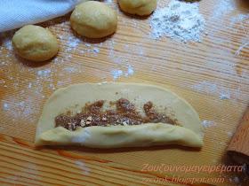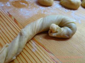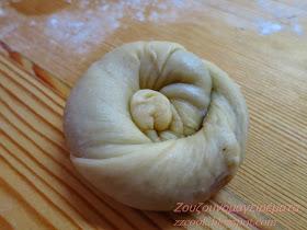 Κάνουμε ρολό τη ζύμη τη στρίβουμε σαν κουλουράκι.