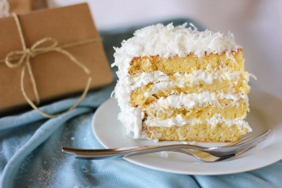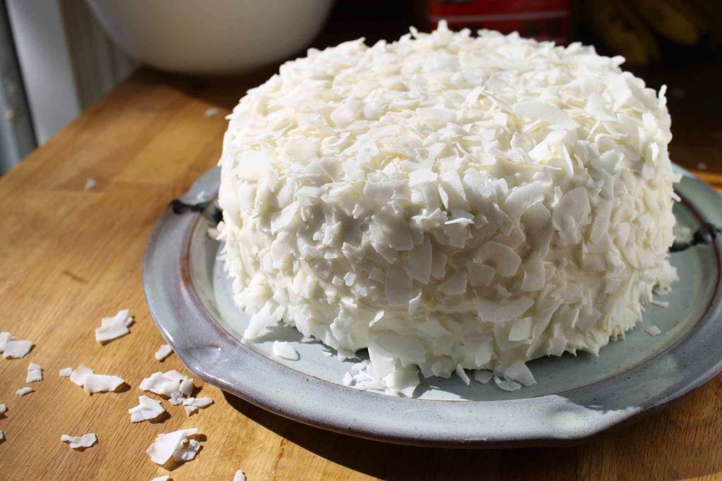 Για το κέικ 250 gr Βούτυρο –σε θερμοκρασία δωματίου 430gr Άχνη ζάχαρη 6 Αυγά 200gr Αλεύρι περίπου 100gr Καρύδα τριμμένη 160 ml.Γάλα καρύδας Με ένα μίξερ, χτυπάμε το βούτυρο και τη ζάχαρη σε ένα μπολ και, στη συνέχεια, προσθέστε τα αυγά . Σε ένα ξεχωριστό μπολ ανακατεύουμε το αλεύρι με την τριμμένη καρύδα και προσθέστε το γάλα καρύδας. Ανακατέψτε καλά και προσθέστε αυτό το μείγμα σε αυτό με το βούτυρο. Μοιράζετε το μείγμα σε δύο ταψάκια αλουμινίου μιας χρήσης και ψήνουμε σε προθερμασμένο φούρνο 180 βαθμούς για περίπου μια ώρα . Αφήστε να κρυώσουν και κόψτε οριζόντια τα 2 κέικ να έχετε 4 κομμάτια .