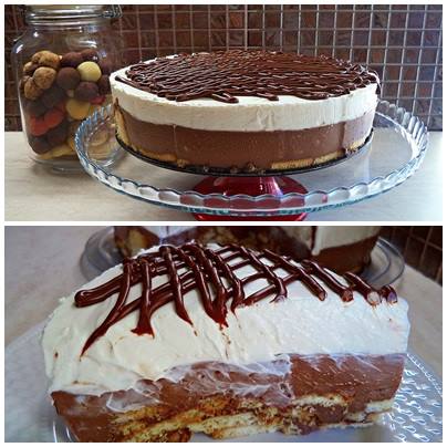 ΕΚΤΕΛΕΣΗ Σε μια φόρμα 26-28 εκ.με τσέρκι ρίχνω τα μπισκοτα.Σε μια κατσαρόλα ρίχνω το γάλα και το κορν φλάουρ και ανακατεύω να λιώσει.Επειτα ανοίγω τη φωτιά,προσθετω τη ζάχαρη το βητάμ και ανακατεύω συνεχώς μέχρι να δέσει η κρέμα.Όταν δέσει κατεβάζω από τη φωτιά και προσθέτω τη σοκολάτα και τη μερέντα.Αδειάζω την καυτή κρέμα πάνω από τα μπισκότα.Σκεπάζω με μεμβράνη την επιφάνεια για να μην κάνει ”πέτσα” και αφήνω να κρυώσει.Όταν κρυώσει την βάζω στο ψυγείο να παγώσει καμιά ώρα.Χτυπάω το morfat να φουσκώσει και προσθέτω το ζαχαρούχο λίγο λίγο χτυπώντας.Ρίχνω και τη βανίλια και αδειάζω την λευκή κρέμα,πάνω από τη σοκολατένια κρέμα.Βάζω στο ψυγείο τουλάχιστον 3-4 ώρες,ή όλη νύχτα.Ξεφορμάρεται πανεύκολα ξεχωρίζοντας τα τοιχώματα γύρω γύρω με ένα μαχαίρι.Τα μπισκότα μαλακώνουν από την κρέμα.Γαρνίρω με λιωμένη Μερέντα και τριμμένα μπισκότα αν θέλω!