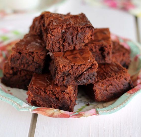 Προθερμαίνουμε το φούρνο μας στους 180 βαθμούς στις αντιστάσει αντιστάσεις και βουτυρώνουμε και πασπαλίζουμε με κακάο ένα ορθογώνιο πυρέξ με διαστάσεις 20×30 εκ. και πασπαλίζουμε τον πάτο του σκεύους με κακάο. Βάζουμε τη Νουτέλα, το αλεύρι και τα αυγά σε ένα μεγάλο μπολ και τα ανακατεύουμε με το σύρμα μέχρι να ενωθούν καλά και να διαλυθούν όλοι οι σβόλοι από το αλεύρι. Προσθέτουμε τέλος και τις τις σταγόνες σοκολάτας και ανακατεύουμε μέχρι να ενσωματωθούν πλήρως και αυτές στο μείγμα. Αδειάζουμε το μείγμα στο πυρέξ και το ψήνουμε στη κάτω σχάρα για 30′-40΄ ή μέχρι που να βγαίνει με ελάχιστα ψίχουλα μια οδοντογλυφίδα που θα βυθίσουμε στο εσωτερικό του. Να μη παραψηθεί και “στεγνώσει”. Περιμένουμε λίγη ώρα να κρυώσει το γλυκό και κατόπιν το κόβουμε σε μικρά τετράγωνα κομμάτια.