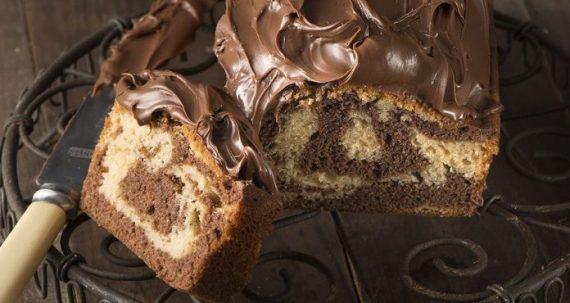 Βάζουμε τα αυγά με τη ζάχαρη στο μίξερ και τα χτυπάμε με το σύρμα μέχρι να αφρατέψουν καλά. Παράλληλα, λιώνουμε το βούτυρο σε ένα κατσαρολάκι. Προσθέτουμε το γάλα στο μίξερ καθώς εκείνο χτυπάει και μετά προσθέτουμε και το λιωμένο βούτυρο σιγά – σιγά. Περνάμε το αλεύρι, το αλάτι, το μπέικιν και το κακάο από σίτα και τα προσθέτουμε στο μείγμα του μίξερ. Ανακατεύουμε για μισό λεπτό μέχρι να ενσωματωθούν όλα τα υλικά. Αφαιρούμε από το μίξερ και αφήνουμε στο πλάι.