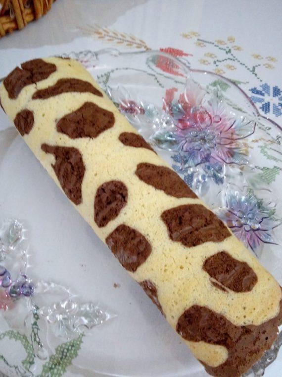 Σε ένα ταψί 30 επί 40 στρώνουμε λαδόχαρτο. Βάζουμε λίγη ζύμη σε μια σακούλι τσα τρυπάμε και κάνουμε σχεδιάκια…. Ψήνουμε στους 200 περίπου 5 λεπτά Στην υπόλοιπη ζύμη ρίχνουμε το κακάο και 1 κουταλιά νερό και απλώνουμε στο ταψί.. Ψήνουμε 12 λεπτά… Απλώνουμε μερέντα και τυλίγουμε… Αν θέλουμε βάζουμε και λίγη σαντιγί.