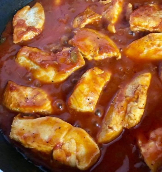 Φιλετάκια κοτόπουλου κοκκινιστά ? Υλικά ·500γρ. φιλέτο κοτόπουλο (κομμένο σε μπουκίτσες) ·1 κρεμμύδι ψιλοκομμένο ·1 πιπεριά πράσινη ·1 πιπεριά κόκκινη ·250γρ. μανιτάρια (προαιρετικά) ·2-3 ντομάτες τριμμένες η 1 κουτί ντοματοχυμό ·2 κουτ.σούπας πελτέ ντομάτας ·1 σφηνάκι λευκό κρασί ·ελαιόλαδο ·αλάτι ·πιπέρι Εκτέλεση Σοτάρουμε σε λίγο ελαιόλαδο το κοτόπουλο, προσθέτουμε το κρεμμύδι, τα μανιτάρια και τις πιπεριές κομμένες φετάκια και σβήνουμε με το κρασί.Αφήνουμε να εξατμισθεί 10 λεπτά χαμηλώνοντας τη θερμοκρασία. Ρίχνουμε τη τριμμένη ντομάτα (η τον χυμό ντομάτας),τον πελτέ,αλάτι και πιπέρι. Προσθέτουμε 1/2 κούπα νερό περίπου και αφήνουμε 30 λεπτά να σιγοβράσει. Μπορούμε να το συνδυάσουμε με μακαρόνια,ρύζι,πουρέ η πατάτες τηγανητές. (Στη φωτό δεν φαίνονται οι πιπεριές γιατί τις περνάω από το multi διότι εάν τις βάλω κανονικά σε φέτες δε θα τις φάει το μικρό μου ζουζούνι…κι επειδή ουτε τα μανιτάρια τρώει δεν εβαλα καθόλου)