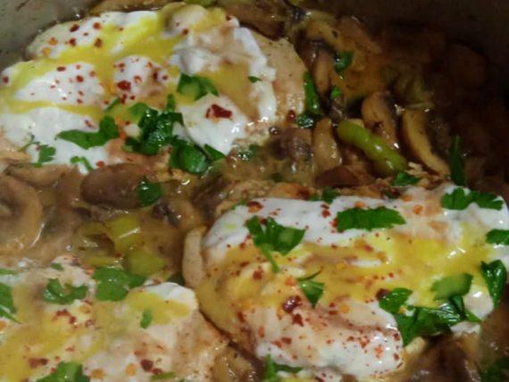 Δείτε παρακάτω την εκτέλεση για την φανταστική συνταγή για Φιλέτο κοτόπουλο με μανιτάρια και γιαούρτι: