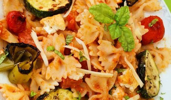 Σήμερα θα φτιάξουμε παρέα το απόλυτο καλοκαιρινό φαγάκι με ζυμαρικά φιογκάκια με λαχανικά, κολοκυθάκια, ντοματίνια, ντομάτες και κατσικίσια φέτα. Είναι ένα ελαφρύ φαγητό και η κατσικίσια φέτα μπορεί να είναι ένα βαρύ τυρί όμως στο συγκεκριμένο φαγητό δίνει την νοστιμιά που του χρειαζόταν.