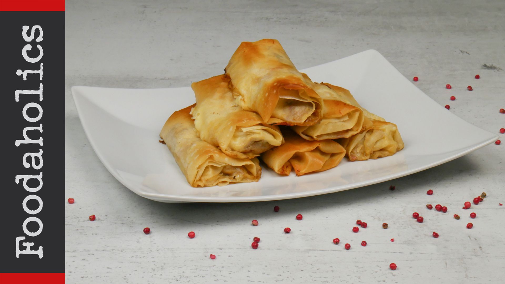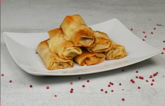 Φλογέρες κοτόπουλου με μπέικον, μανιτάρια, πιπεριές και διάφορα τυριά! Ένα τέλειο ορεκτικό για την οικογένεια ή το επίσημο τραπέζι, πολύ εύκολο και χορταστικο! Μπορείτε να φτιάξετε αυτές τις φλογέρες και με το κοτόπουλο που έχει περισσέψει, και να προσθέσετε ότι γέμιση επιθυμείτε! Το χωριάτικο φύλλο τις κάνει τραγανές και ανάρπαστες!