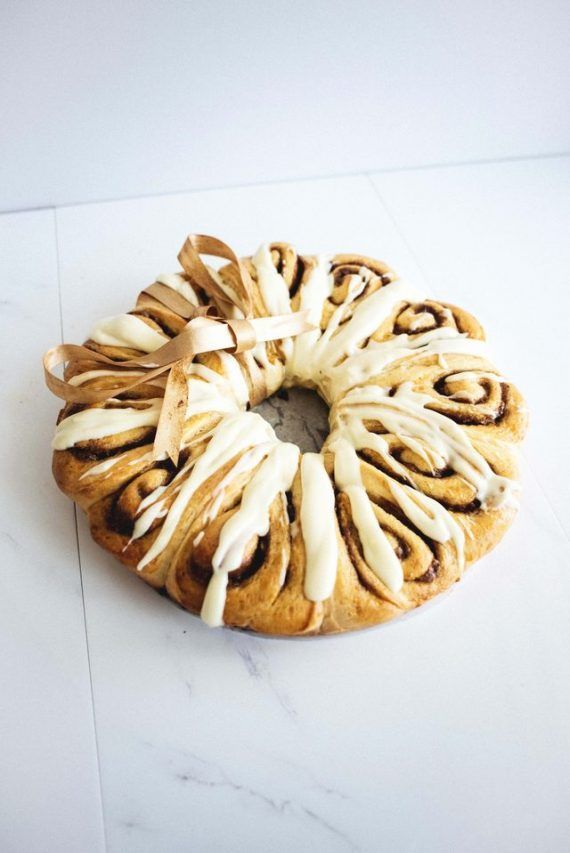Είναι πολύ εύκολη η διαδικασία για να φτιάξετε αυτό το στεφάνι! Αποτελείται από βουτυρένια ρολά κανέλας τα οποία είναι εύκολο να τα διαμορφώσετε σε ένα κυκλικό στεφάνι. Το στεφάνι αυτό το ψήνετε μέχρι να πάρει χρώμα, να ροδίζει και στη συνέχεια το πασπαλίζετε με γλάσο κρέμας τυριών!