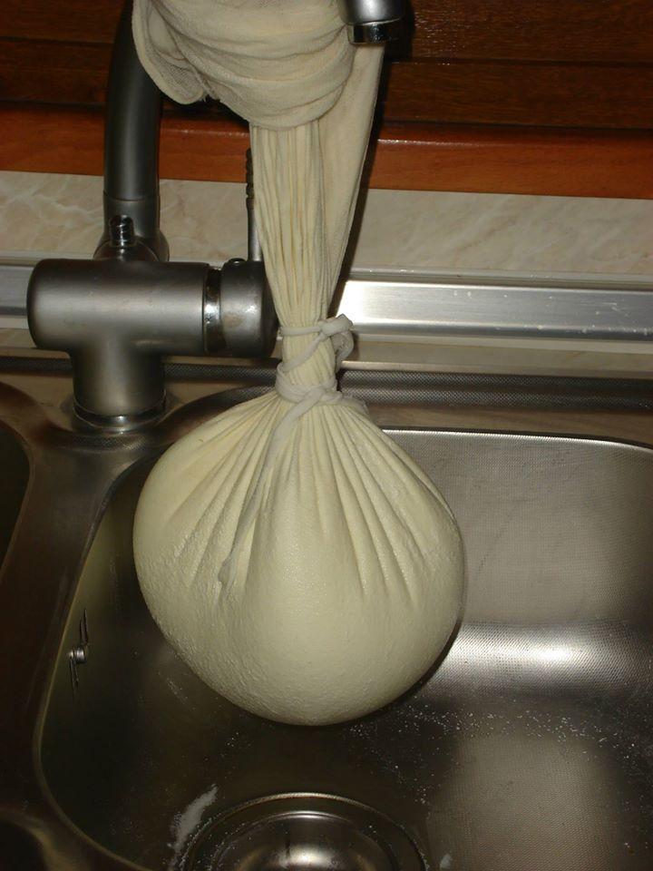 Οταν πήξει κόβω με μια κουτάλα και ρίχνω μέσα σε μια τσαντίλα το τυρί,δένω σφιχτά και αφήνω να στραγγίσει καλά μέχρι την άλλη μέρα Την επομένη μέρα το τυρί είναι έτοιμο Το κόβω σε χοντρές φέτες ,το πασπαλίζω με χοντρό αλάτι και το βάζω στο ψυγείο για δυό μέρες Μετά τις δυό μέρες βάζουμε το τυρί σε άλμη!! Δες εδώ πως να φτιάξεις σπιτικη αλμη