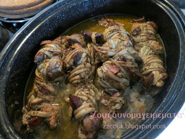 Καλό Πάσχα! Η συκωταριά μας έγινε γαρδουμπάκια φέτος, ούτε καν κοκορέτσι, ψήθηκαν στη γάστρα στο φούρνο και έγιναν πεντανόστιμα! Το κοκορέτσι θέλει βοηθό… τα γαρδουμπάκια τα έκανα μόνη… και για πρώτη φορά μια χαρά…