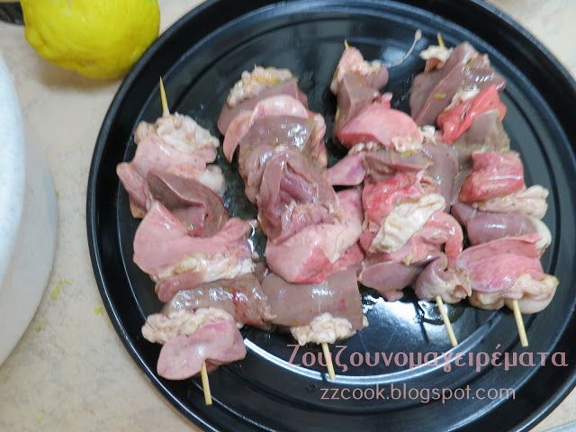 Καθαρίζουμε τα εντεράκια μέσα κι έξω, κόβουμε τη συκωταριά σε κομμάτια και τα συγκετρώνουμε σε ένα μπολ.