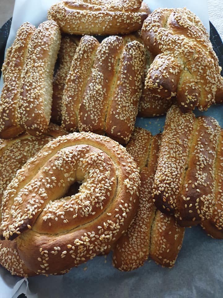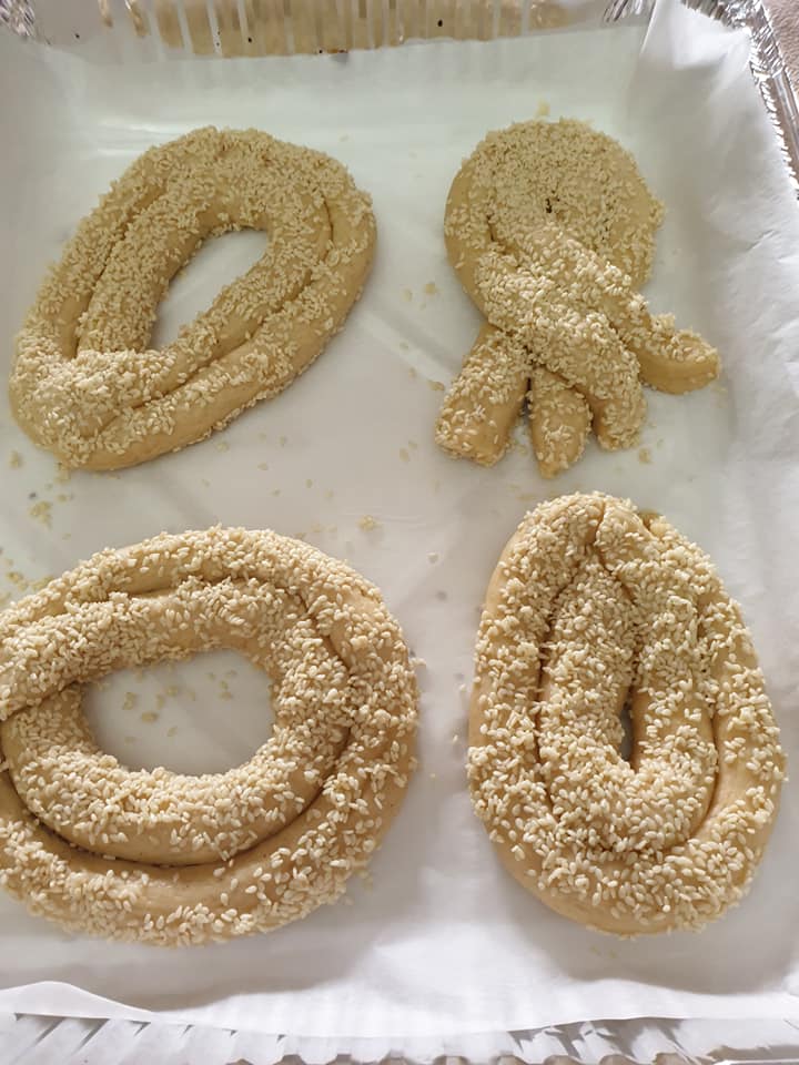 Αφού φτιάξουμε την ζύμη μας, πλάθουμε τα χωριάτικα κουλούρια μας και προσθέτουμε το σουσάμι. Τα αφήνουμε για μισή ώρα να φουσκώσουν σε θερμοκρασία δωματίου και τα ψήνουμε στους 175 βαθμούς Κελσίου για 20 με 25 λεπτά!