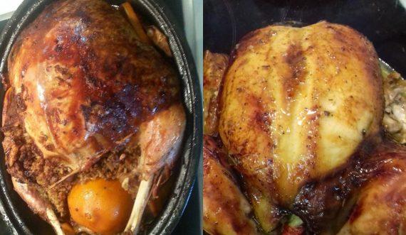 γεμίζετε το κοτόπουλο ή τη γαλοπούλα και βάζετε γέμιση παντού. κάτω από την πέτσα του, στο ταψί και φυσικά και μέσα.