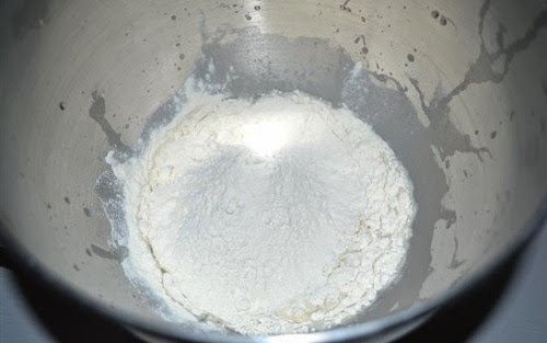 Προσθέστε το αλεύρι και αρχίζουμε να ζυμώνουμε.