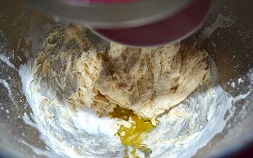 Όταν η ζύμη θα αρχίσει να σφίγγει , προσθέτουμε το αλάτι και το λάδι.