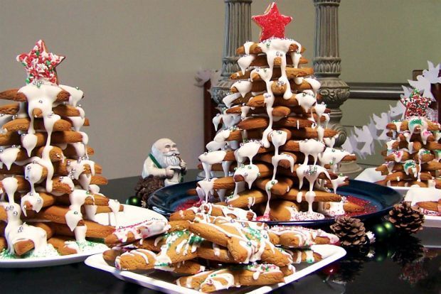 Κόψτε τη ζύμη σε μεγάλα αστέρια και μικρότερα αστέρια για να κάνετε ένα μπισκοτένιο δεντράκι που θα στολίσει το τραπέζι.δειτε εδω αναλυτικα τις οδηγιες![]()