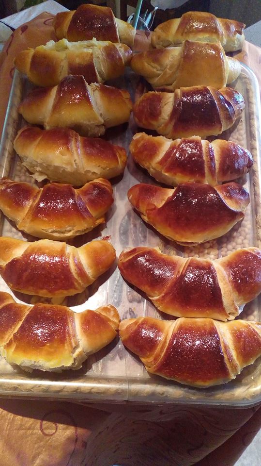 Τοποθετούμε μαρμελάδα στην άκρη τα ρολαρουμε τα τοποθετούμε στο ταψί μας στην λαδόκολλα τα αλείφουμε με κρόκο αυγού και τα ψήνουμε σε προθερμασμενο φούρνο στους 200 βαθμούς αντιστάσεις για 20 λεπτά φυσικά τον φούρνο μας.