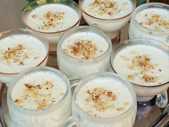 Δείτε παρακάτω την εκτέλεση για το ζελέ ανανά με καρύδια και γιαούρτι: