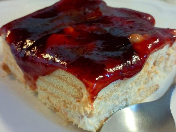 Τώρα που οι θερμοκρασίες είναι υψηλές θέλουμε οι γεύσεις μας να είναι δροσερές και ελαφριές για να μην ζεσταινόμαστε παραπάνω. Γι’ αυτό και θα μοιραστούμε μαζί σας ένα οικονομικό, εύκολο και μαμαδίστικο γιαουρτογλυκό με μπισκότα, μαρμελάδα αγριοκέρασο και ελαφριά κρέμα γιαουρτιού.