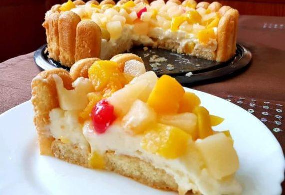Γλυκό ψυγείου με σαβαγιάρ και άλλα 3 υλικά ,με κρέμα μπαβαρουάζ και φρουτοσαλάτα σε κονσέρβα!