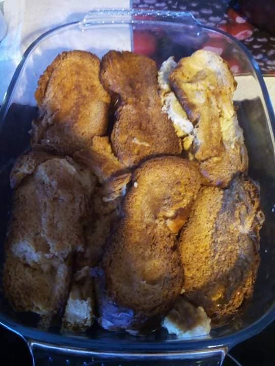 Τοποθετούμε ένα τηγάνι σε μέτρια φωτιά και βάζουμε 1 κ.γ. βούτυρο. Βάζουμε τις μισές φέτες από το τσουρέκι και ψήνουμε για 1 λεπτό και από τις δύο πλευρές να πάρουν χρώμα. Ακολουθούμε την ίδια διαδικασία και για τις υπόλοιπες φέτες. Απλώνουμε το τσουρέκι σε ταψί 25×32 εκ. φροντίζοντας να καλύψουμε όλα τα κενά από τη βάση του ταψί και περιχύνουμε με το καυτο * σιρόπι*, αφήνουμε στην άκρη να απορροφηθεί.