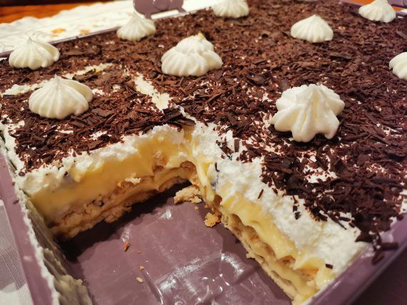Χωρίς πολύπλοκα υλικά ή διαδικασίες, με στρώσεις μπισκότου, κρέμας και σοκολάτας.Είναι η εύκολη, σπιτική εκδοχή του μιλφέιγ .